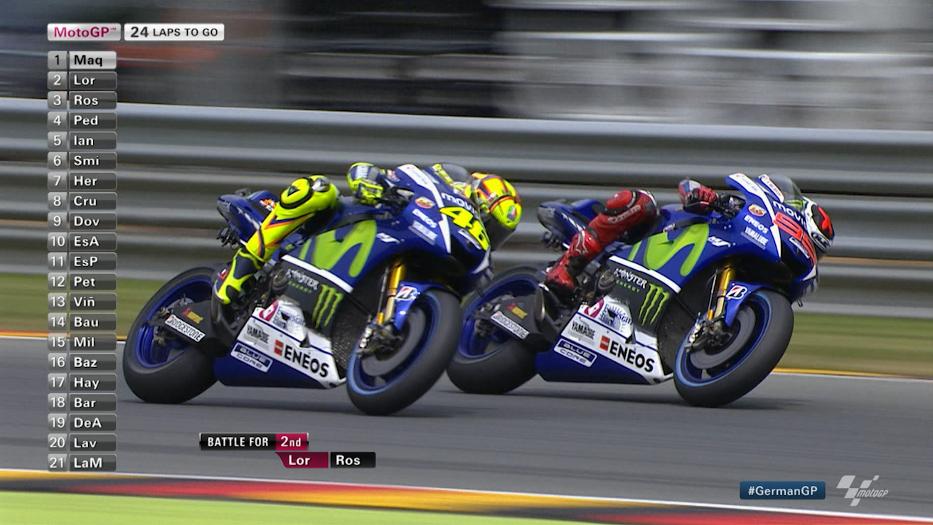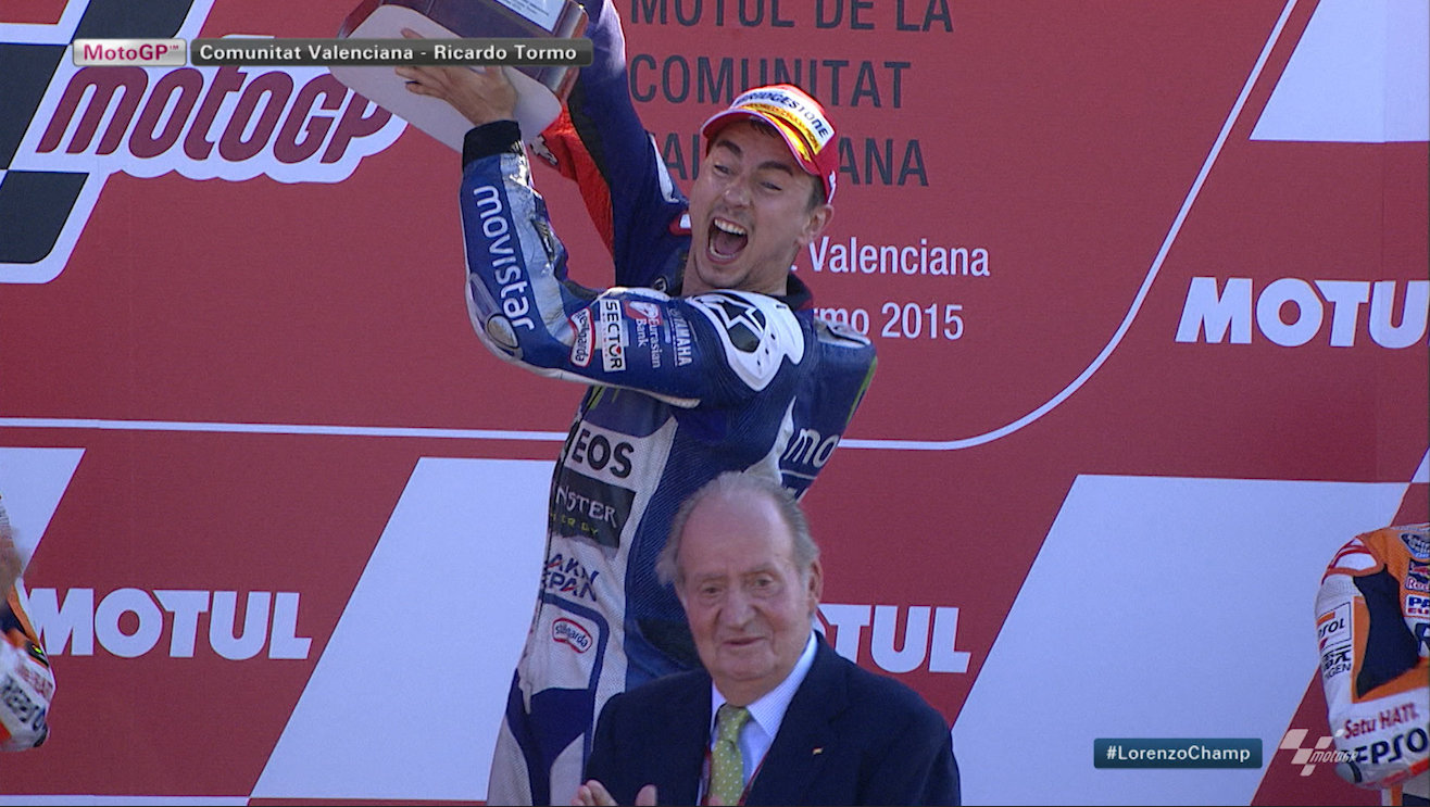 この年はロッシとマルケスが物議を醸し出す接触を繰り返したシーズンでもあった。アルゼンチン、オランダ、そして極めつけはマレーシアでの接触。この影響でロッシはペナルティを受け、最終戦で最後尾スタート。結果的にロレンソが5回目の世界タイトルを獲得した。