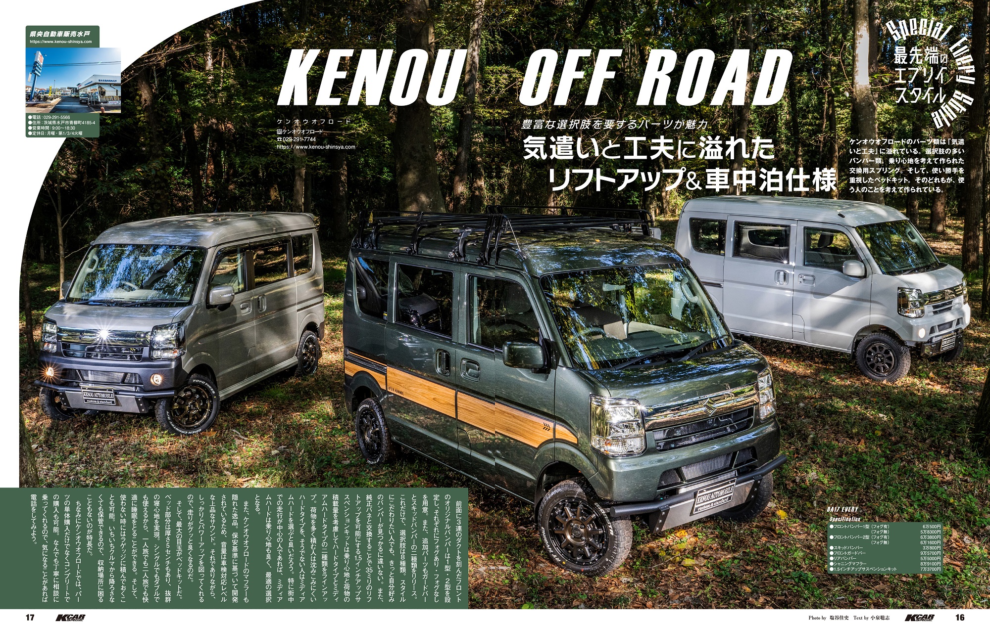 仕事に遊びにアクティブに使える「スズキ・エブリイ」のカスタム専門誌。ボディパーツはもちろん室内パーツやアウトドア用品まで、エブリイに使えるカスタムパーツを完全収録。エブリイの広い荷室を有効に使う「室内有効カスタム術」や「お得な新車コンプリートガイド」などユーザー目線の企画が満載です。