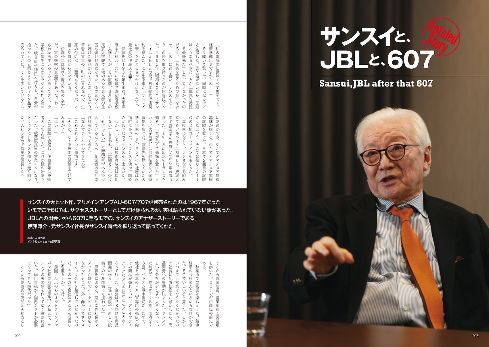 Vol.7の巻頭特集は「サンスイと、JBLと、607」。伊藤瞭介 元サンスイ社長の特別インタビューです。