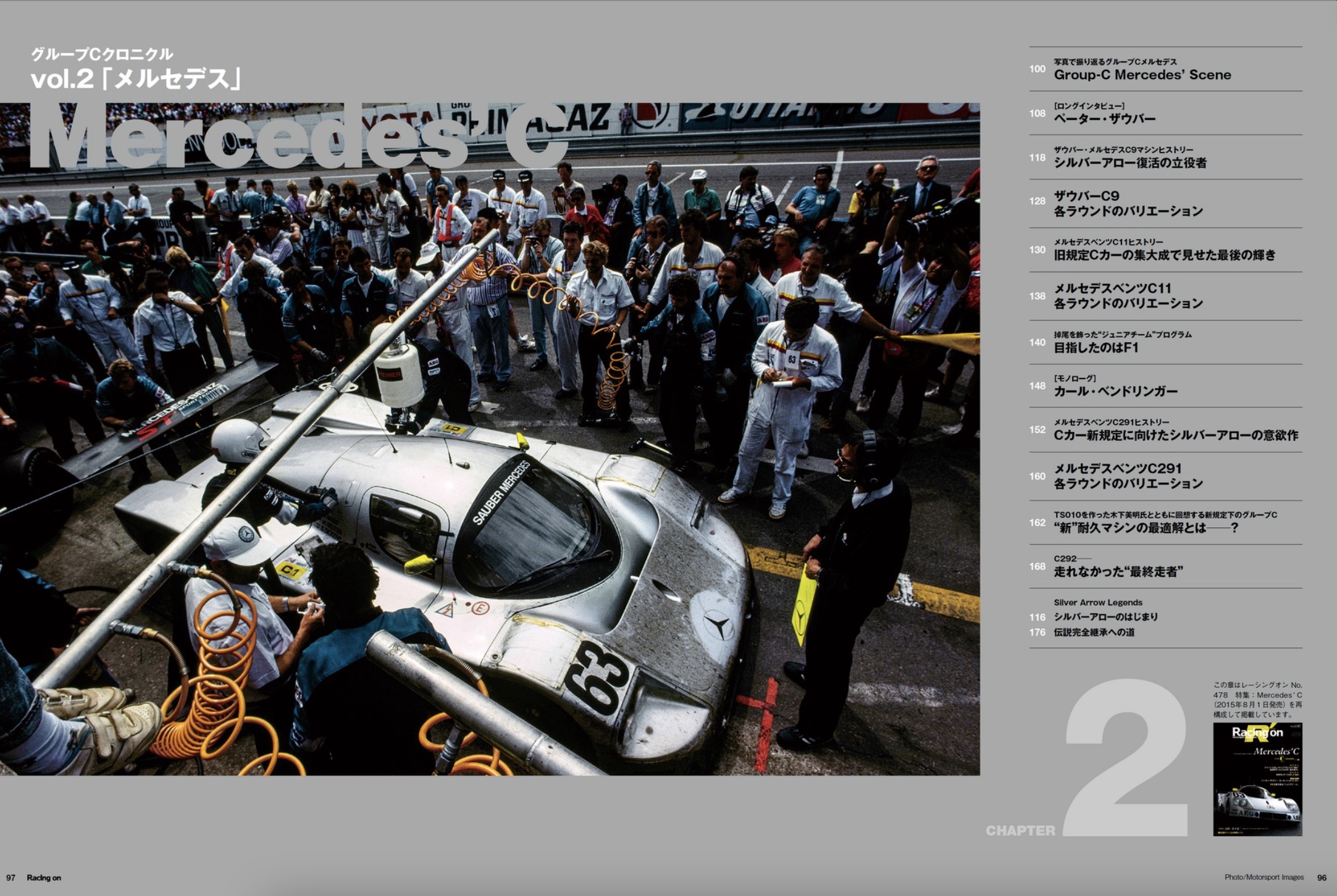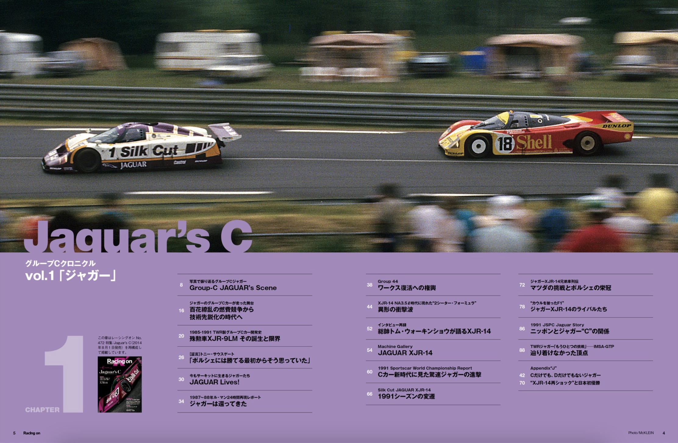誌面ではそれぞれ「Jaguar's C」「Mercedes' C」と題して180ページのボリュームでジャガー/メルセデスの輝かしいグループCカテゴリーでの活躍をその初期から末期までを完全網羅して紹介。