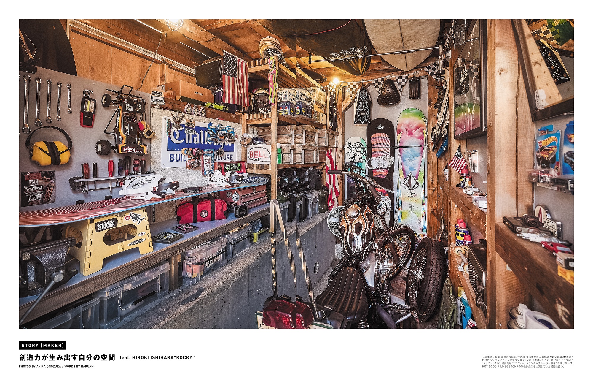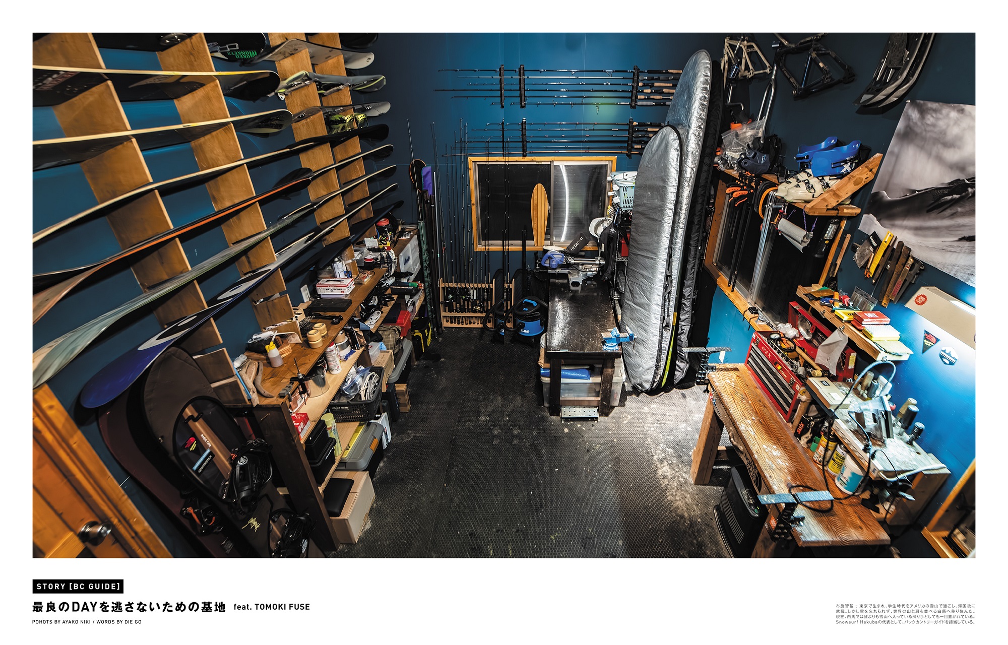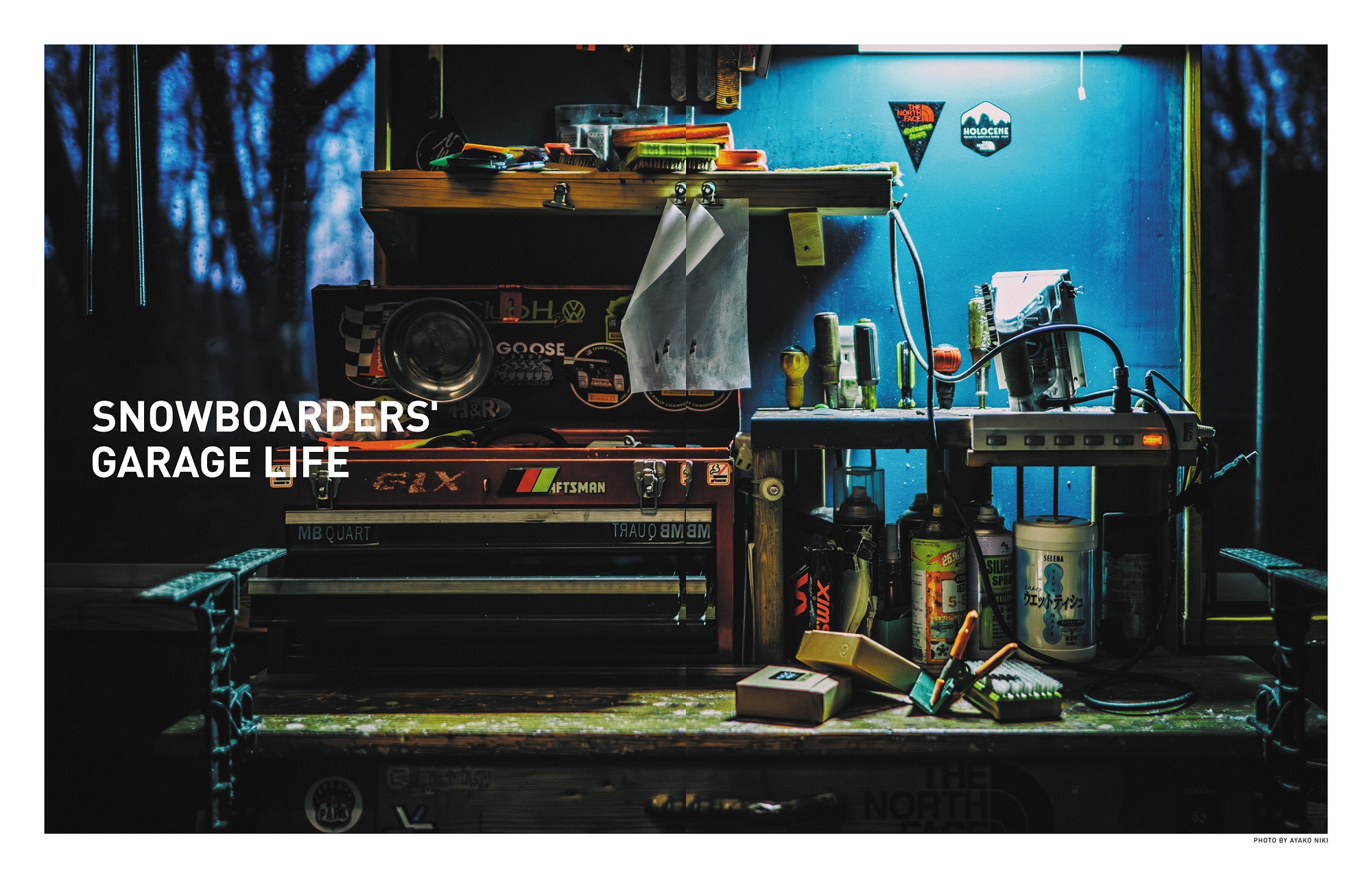 スノーボーダーのガレージライフにフォーカスします。日本の住宅事情からすると、「ギアルーム」や「ギアスペース」という表現がしっくりくるかもしれません。今号は、肩書きも様々なスノーボーダーたちの“超プライベート空間”を拝見させてもらいながら、そこから始まるウィンターライフを追いかけます。