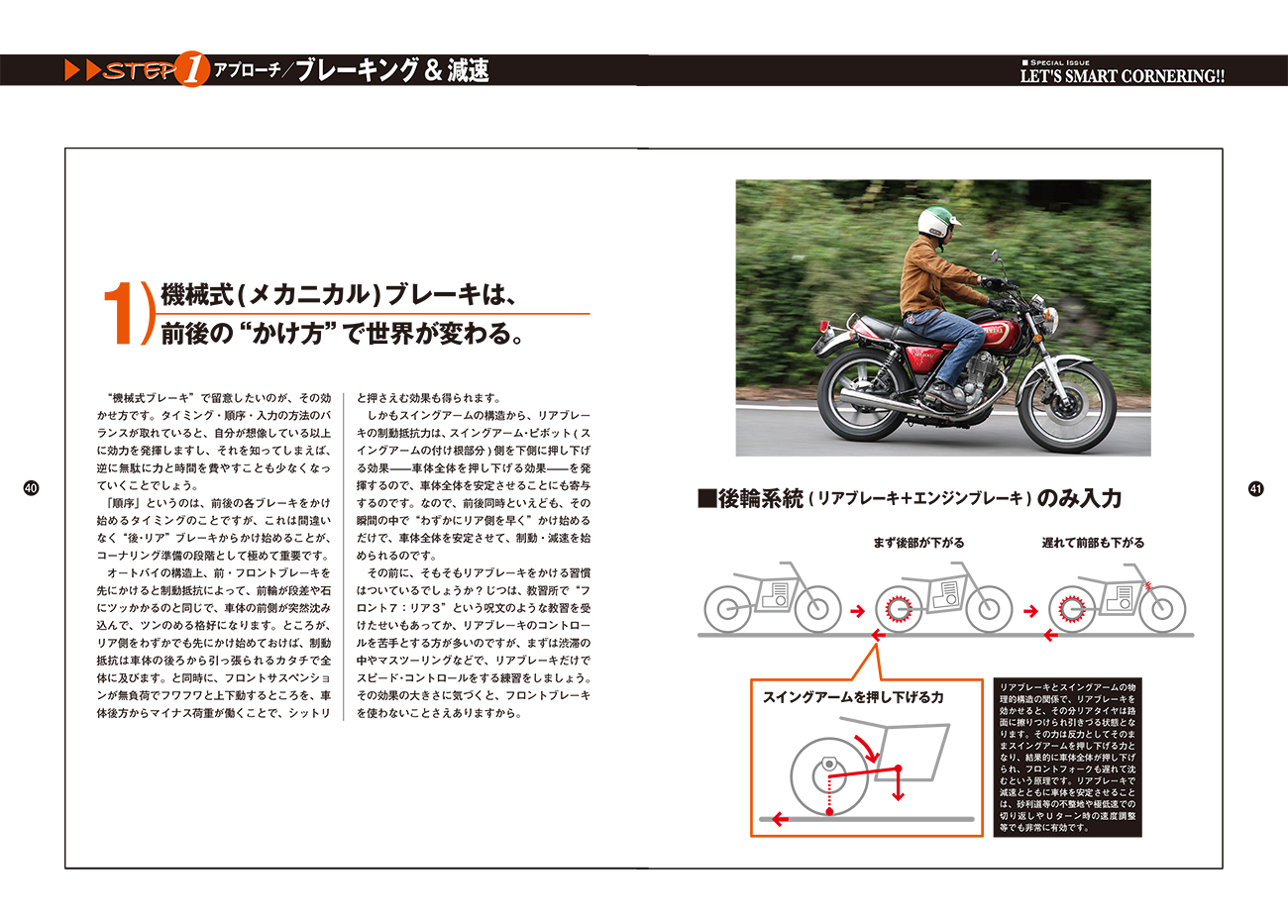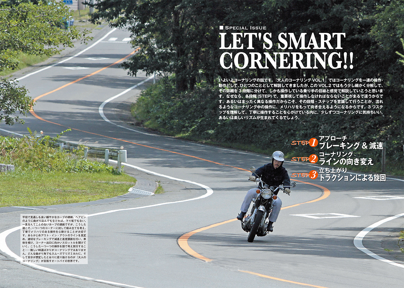 コーナリングが上達するにはひたすら練習……と思いがちですが、やみくもに走るよりも“オートバイの仕組み”を知ることの方がよっぽど近道です。大切なのは、「何を意識して走るのか」。それは、オートバイの仕組みや構造に逆らわずに操作できているか? あるいは、どれだけオートバイの動きを感じられているか? が、コーナリングが楽しくなる最初のポイントだからです。一昨年発売したVOL.1では、オートバイの仕組み、そしてコーナーの仕組みを、その根本から解説することをテーマとしましたが、VOL.2では、さらに一歩踏み込み、コーナリング中に起きていることを、オートバイに乗っている・操っている“自分目線”の感覚から考えていきました。