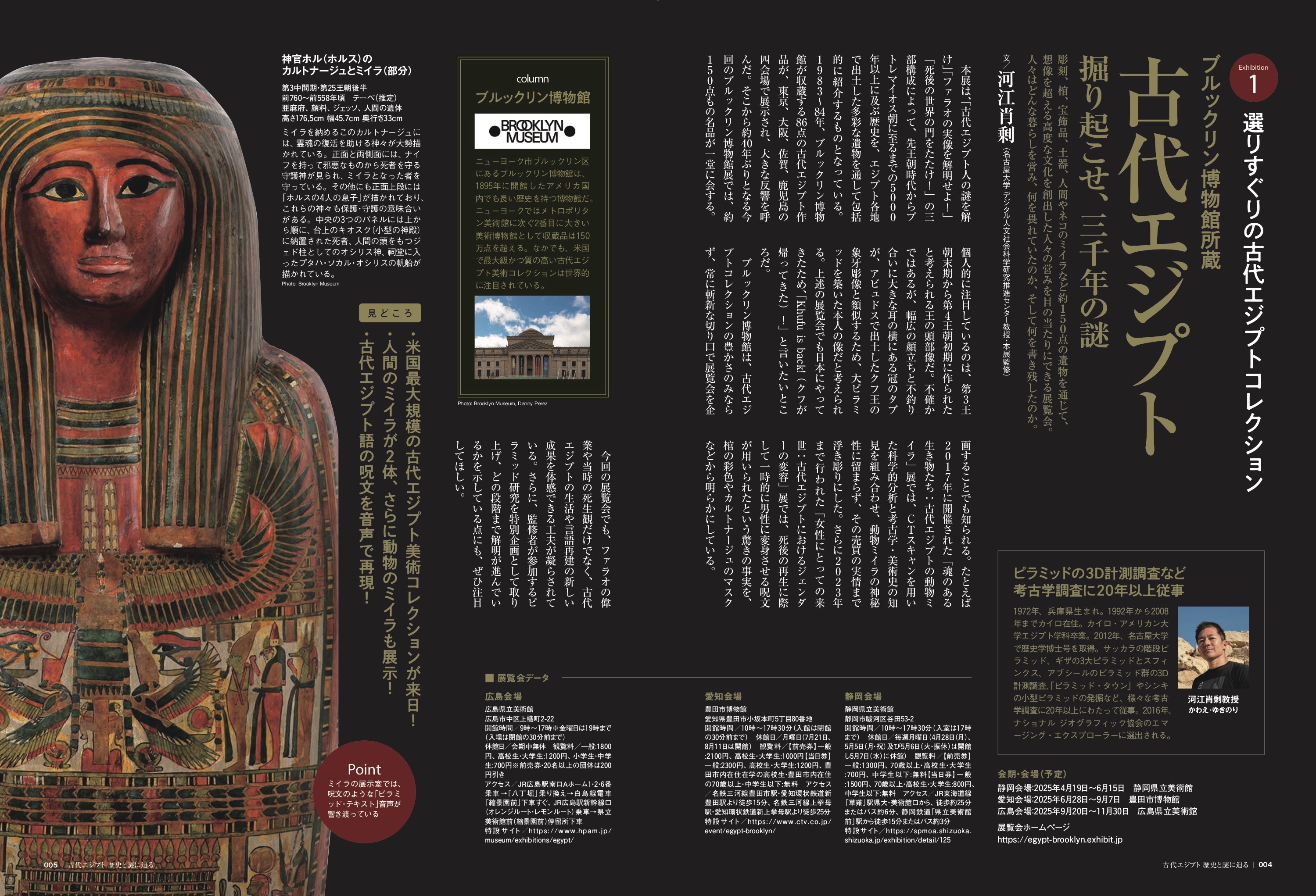 紀元前3000年頃に始まり、第1王朝からおよそ3000年続いたといわれる古代エジプト。その時代に遺されたピラミッドやミイラなどの遺産は今なお多くの謎が残されており、歴史のロマンあふれる古代エジプトを解明するために発掘調査や研究が今も続いている。2025年、いま各地で開かれているエジプト関連の展覧会の概要にまずは理解を深め、考古学者たちの最近研究と見解とともに、古代ロマンを追いかけてみたい。