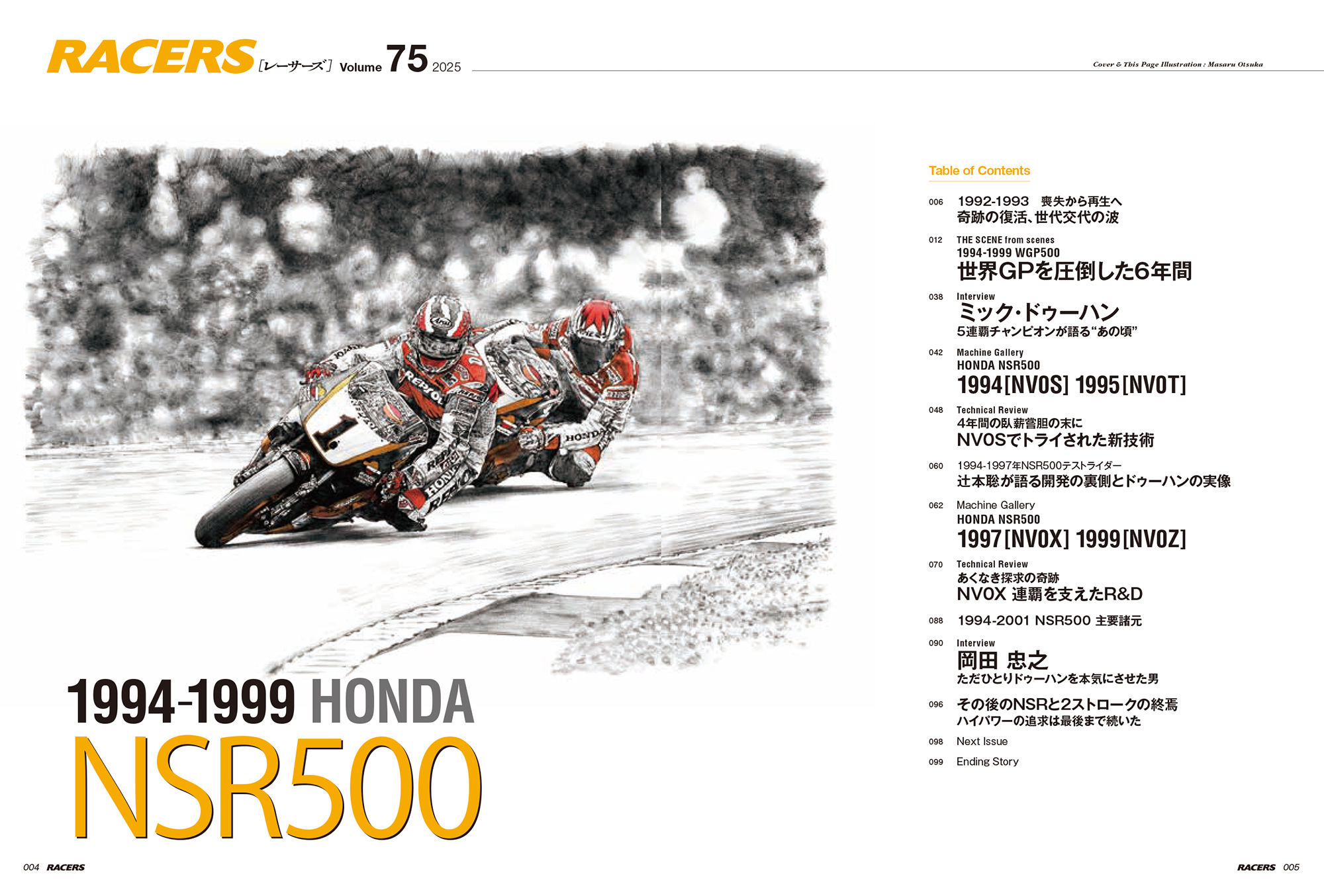 『レーサーズ』Vol.75は20世紀の世界GPを駆け抜けたホンダNSR500を特集します。