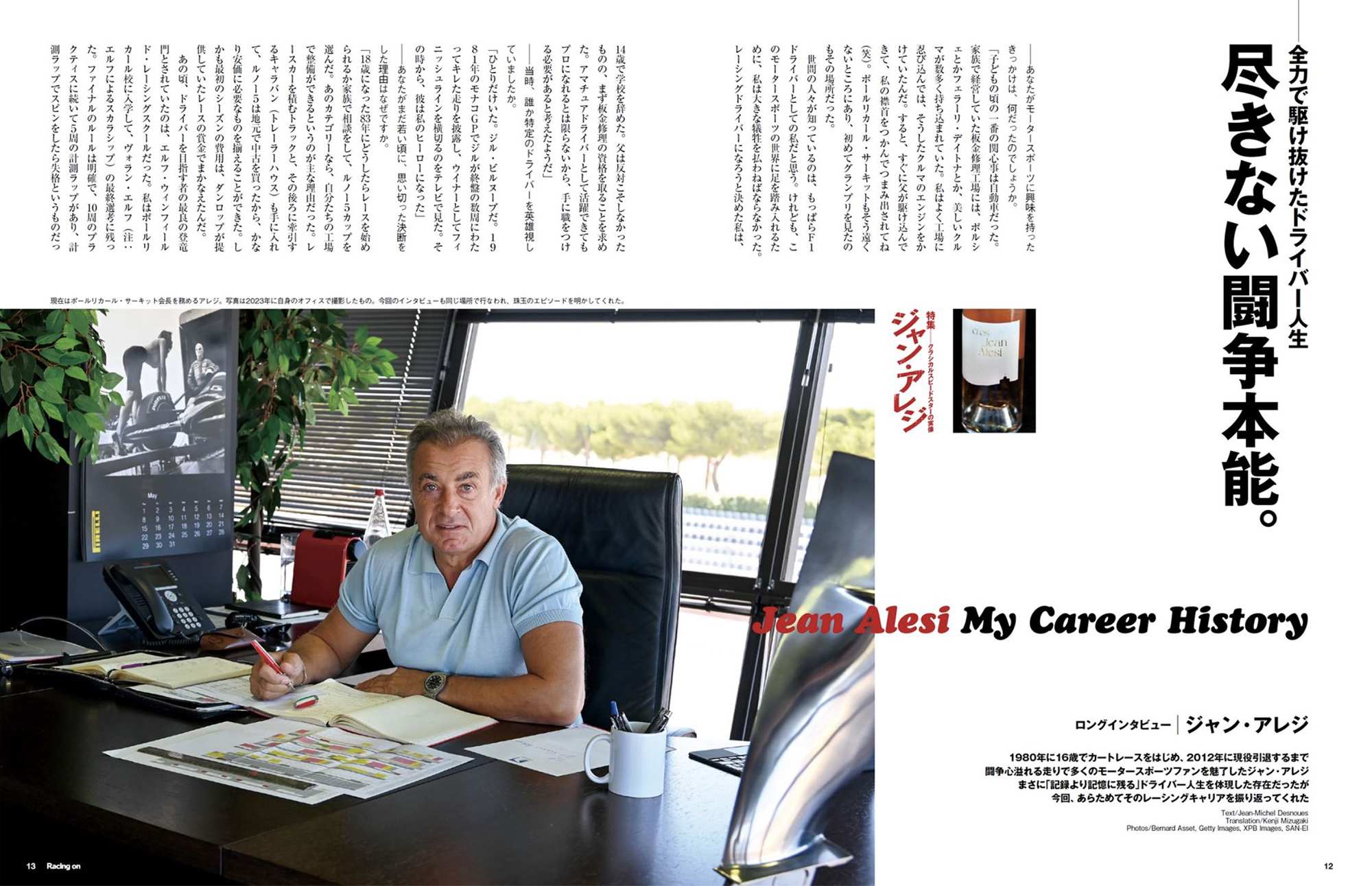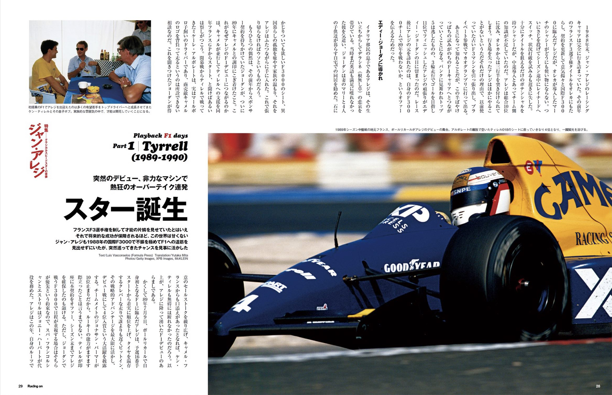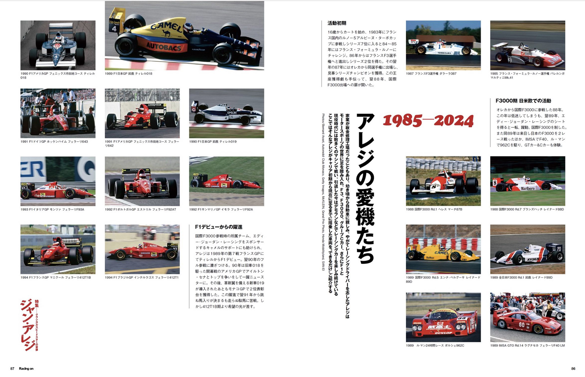日本でF1が盛り上がっていた時代。本誌が制定するF1最熱狂期(1989~93年)の1989年、4位入賞という衝撃のF1デビューを果たした日本でも馴染み深く人気もあったジャン・アレジの特集です。アレジはフル参戦1年目である90年にデビューから所属するティレルで中嶋悟のチームメイトとなり、開幕戦アメリカGPでアイルトン・セナと大バトルを繰り広げて、いきなり2位の大活躍。翌91年にはフェラーリへ移籍し、1992年からは跳ね馬のエースとして奮闘し世界中にファンを獲得しました。さらに夫人は後藤久美子さんで日本企業のテレビCMにも登場、近年は息子のジュリアーノが日本のSUPER GT GT500クラスでトムスのGRスープラを駆るなど、アレジはなにかと日本と縁がある人でもあります。戦績面ではF1で201戦走って1勝のみと、セナやプロスト、シューマッハーらに見劣りしますが、記録よりも記憶に残るアグレッシブなドライビングで多くのファンを魅了しました。そんなアレジのレーシングキャリア、自身の言葉で語る独自のドライビングスタイルと憧れのジル・ビルヌーブについて、さらに愛息ジュリアーノが明かす父の素顔、愛機列伝など「一冊まるごとアレジだらけ」の特集です。