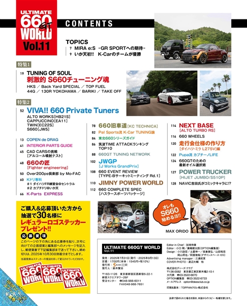 新旧様々なモデルのK-Carのチューニング事例やパーツ、オーナー、イベントなどの内容がギッシリ詰まっていて、マニアにとっては実用性も高く、お買い得な内容となっております。