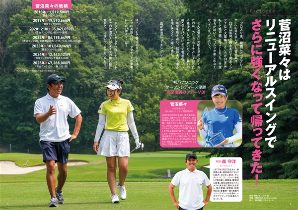 レッスンカットも豊富で、動作のイメージがつかみやすいのも本書の大きな魅力で、菅沼選手の自然体な語り口調、復活に導いた 森守洋 プロコーチの解説は初心者でも読みやすく、親しみやすいムックになっています。