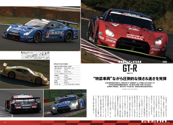誌面ではGT500はもちろんGT300も、この時代に出走したすべてのマシンを完全網羅して紹介、当時のファンだけでなく現在のGTファンにもササる一冊です。ドライバーインタビューや名勝負回想といった記事はなく、ひたすらマシンの紹介に徹した一冊で、それぞれアップデート内容やカラーバリエーションなど細部まで収録。「1戦限り」「予選までだけ出走」なマニアックなマシンも抜かりなく登場です。