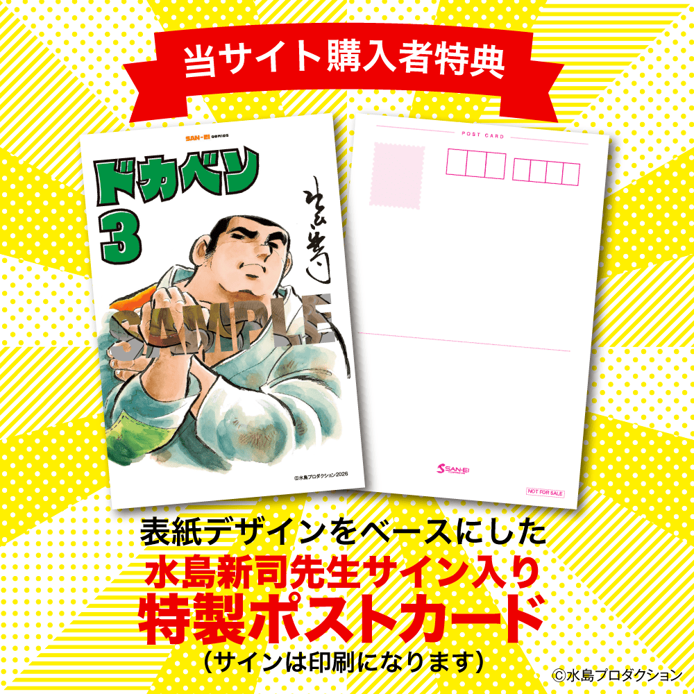 本サイトからの購入限定特典として水島新司先生サイン入り限定ポストカードが付いてきます!(サインは印刷になります)