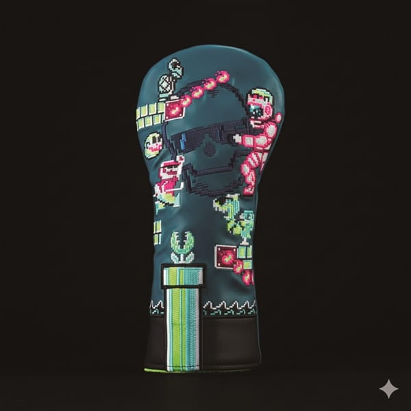ドライバー用の大きなヘッドカバーではゲームのラスボス戦が繰り広げられている。メインキャラクター、ドクロ、火の玉、溶岩、あのシーンを再現。